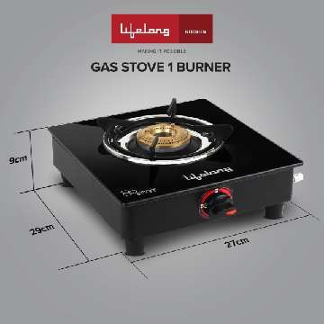 Lifelong ISI Certified Glass Manual Gas Stove Type: Manual Gas Stove Burner Type: Medium Burner Number of Burners: 1 Body Material: Glass Color: Black Dimension: 27 cm x 9 cm 7 Days Return Policy, No questions asked.