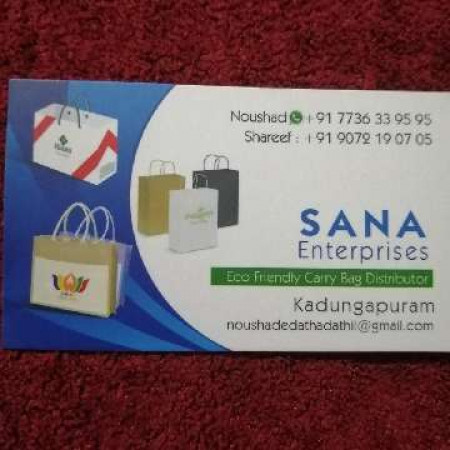 ടെക്സ്റ്റൈൽസ്, ബേക്കറി ഷോപ്പ്, ഫാൻസി ആൻഡ് ഫൂട്ട് വെയർ,പലചരക്കുകട എന്നിവയിലേക്ക് ആവശ്യമായ പേപ്പർ ക്യാരിബാഗ് കോട്ടൺ ബാഗ് തുണിസഞ്ചി എന്നിവ ഓർഡർ പ്രകാരം കടയുടെ പേര് പ്രിൻറ് ചെയ്തുo തുഅല്ലാതെയും നിർമ്മിച്ചു കൊടുക്കുന്നു.