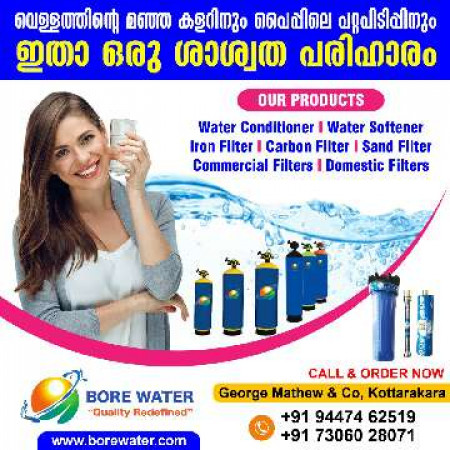 കിണർ , കുഴൽ കിണർ , വാട്ടർ കണക്ഷനുകളിലെ വെള്ളത്തിന്റെ മഞ്ഞ കളർ , ദുർഗന്ധം, കഠിന്യം, എന്നിവരയ്ക്ക് ശാശ്വത പരിഹാരം