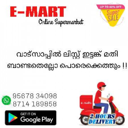 ഇനി എല്ലാം വീട്ടിലിരുന്ന് വാങ്ങാം .. ഞങ്ങളുടെ ആപ്പ് ഡൗണ്ലോഡ് ചെയ്യൂ https://play.google.com/store/apps/details?id=com.web2app.emart