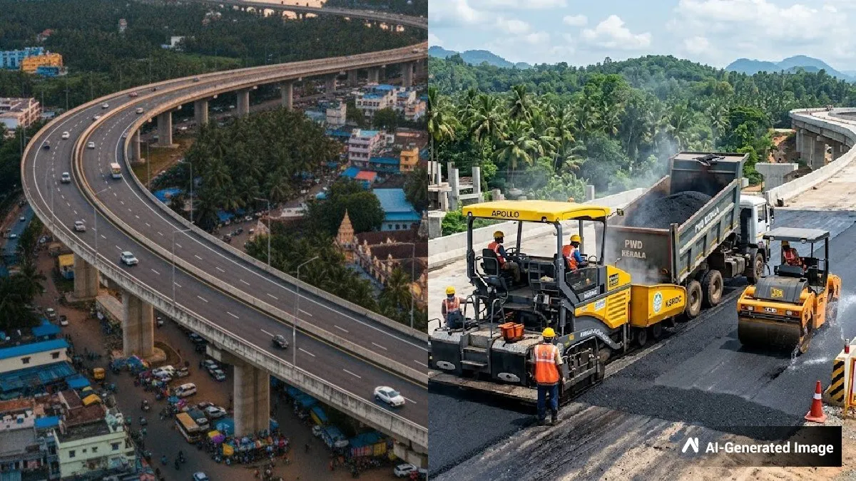 അരൂർ-തുറവൂർ എലിവേറ്റഡ് ഹൈവേ; എരമല്ലൂർ ഭാഗത്തെ ടാറിംഗ് പുരോഗമിക്കുന്നു, കാത്തിരിപ്പിൽ യാത്രക്കാർ . Aroor Thuravoor Elevated Highway; Tarring In Progress At Eramallur Section, Passengers Waiting