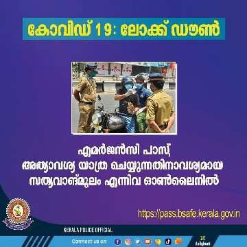 കോവിഡ് 19 നെ തുടര്ന്നുള്ള നിയന്ത്രണങ്ങളുടെ പശ്ചാത്തലത്തില് പൊതുജനങ്ങള്ക്ക് അത്യാവശ്യ സാഹചര്യത്തില് യാത്ര ചെയ്യുന്നതിനാവശ്യമായ സത്യവാങ്മൂലം, വെഹിക്കിള് പാസ് എന്നിവ ലഭിക്കുന്നതിന് ഓണ്ലൈന് സംവിധാനം സജ്ജമായിട്ടുണ്ട്. https://pass.bsafe.kerala.gov.in എന്ന ലിങ്ക് വഴി പൊതുജനങ്ങള്ക്ക് ഈ സൗകര്യം പ്രയോജനപ്പെടുത്താം. സൈബര് ഡോം നോഡല് ഓഫീസര് കൂടിയായ എഡിജിപി മനോജ് എബ്രഹാമിന്റെ നേതൃത്വത്തിൽ സൈബർ ഡോമിലെ വിദഗ്ധ സംഘമാണ് ഓണ്ലൈന് സംവിധാനം വികസിപ്പിച്ചത്. രണ്ടു രീതിയിലുള്ള സൗകര്യങ്ങൾ ഈ പോർട്ടൽ വഴി ലഭ്യമാണ്. 1 . സത്യവാങ്മൂലം (affidavit ) വളരെ അത്യാവശ്യ സന്ദര്ഭങ്ങളില് യാത്ര ചെയ്യുന്നതിനാവശ്യമായ സത്യവാങ്മൂലം ഓണ്ലൈനില് ലഭിക്കുവാന് യാത്രക്കാര് പേര്, മേല്വിലാസം, വാഹനത്തിന്റെ നമ്പര്, സഹയാത്രികന്റെ പേര്, യാത്ര പോകേണ്ടതും തിരിച്ചു വരേണ്ടതുമായ സ്ഥലം, തീയതി, സമയം, മൊബൈല് നമ്പര് എന്നിവ രേഖപ്പെടുത്തിയതിനു ശേഷം യാത്രക്കാരന്റെ ഒപ്പ് അപ്ലോഡ് ചെയ്യണം. ഈ വിവരങ്ങള് പോലീസ് കണ്ട്രോള് സെന്ററിൽ പരിശോധിച്ചശേഷം സത്യവാങ്മൂലം അംഗീകരിച്ച ലിങ്ക് യാത്രക്കാരന്റെ മൊബൈല് നമ്പറിലേയ്ക്കു മെസ്സേജ് ആയി നല്കും. യാത്രവേളയില് പോലീസ് പരിശോധനയ്ക്കായി ഈ ലിങ്കില് ലഭിക്കുന്ന സത്യവാങ്മൂലം കാണിച്ചാല് മതിയാകും. അപേക്ഷ നിരസിച്ചിട്ടുണ്ടെങ്കില് ആ വിവരം മൊബൈല് നമ്പറിലേയ്ക്കു മെസ്സേജ് ആയി ലഭിക്കും. ഒരു ആഴ്ചയില് ഓണ്ലൈന് മുഖാന്തിരം ഉള്ള സത്യവാങ്മൂലം പ്രകാരം പരമാവധി മൂന്നു തവണ മാത്രമേ യാത്ര അനുവദിക്കുകയുള്ളു. 2 . എമർജൻസി പാസ്സ് . കോവിഡ് 19 മായി ബന്ധപ്പെട്ട്, ഐഡി കാർഡുകൾ ഇല്ലാതെ അടിയന്തിര ഡ്യൂട്ടിക്ക് നിയോഗിക്കപ്പെട്ടവർക്കും മറ്റ് അത്യാവശ്യ സേവനങ്ങൾക്ക് നിയോഗിക്കപ്പെട്ടവർക്കും അനുവദിച്ചിരിക്കുന്നതാണ് എമർജൻസി പാസ്സ് . പേര്, മേല് വിലാസം, മൊബൈല് നമ്പര് എന്നിവ ചേര്ത്ത ശഷം ഫോട്ടോ, ഒപ്പ്, ഒഫീഷ്യല് ഐഡി കാര്ഡ് എന്നിവയുടെ ഇമേജ് അപ്ലോഡ് ചെയ്യണം. പരിശോധിച്ച് ബോധ്യപ്പെട്ട ശേഷം, യാത്രക്കാരന് മെസ്സേജ് ലഭിക്കുകയും പാസ്സ് ഓൺലൈൻ ലഭ്യമാകുകയും ചെയ്യും. കോവിഡ് മായി ബന്ധപ്പെട്ടു തുടർച്ചയായി ഡ്യൂട്ടിക്ക് നിയോഗിക്കപ്പെട്ട, ഔദ്യോഗിക പാസ് ഇല്ലാത്തവർക്കാണ് ഈ സൗകര്യം. ഉപഭോക്താക്കൾ ഓൺലൈൻ വഴി നൽകുന്ന വിവരങ്ങൾ തെറ്റാണെന്ന് തെളിഞ്ഞാൽ അപേക്ഷകർ പ്രോസിക്യൂട്ട് ചെയ്യപ്പെടുകയും ശക്തമായ നിയമനടപടികൾക്ക് വിധേയരാവുകയും ചെയ്യും. വളരെ അത്യാവശ്യ സാഹചര്യങ്ങളില് ഉപയോഗിക്കുവാന് ലഭ്യമാക്കിയിട്ടുള്ള ഈ സൗകര്യങ്ങള് ദുരുപയോഗം ചെയ്യുന്നവര്ക്കെതിരെയും നിയമ നടപടികള് സ്വീകരിക്കുന്നതായിരിക്കും