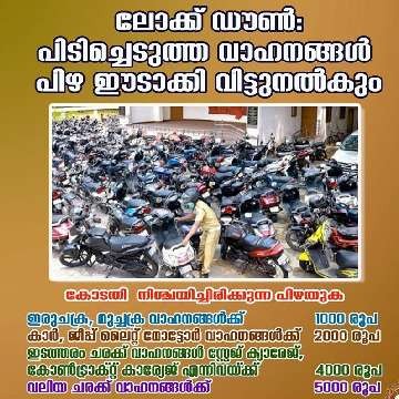 Home › News › ലോക്ക് ഡൗൺ:പിടിച്ചെടുത്ത വാഹനങ്ങള് പിഴ ഈടാക്കി വിട്ടുനല്കും