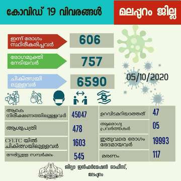 മലപ്പുറം ജില്ലയിൽ ഇന്ന് 606 പേർക്ക് കോവിഡ് 19