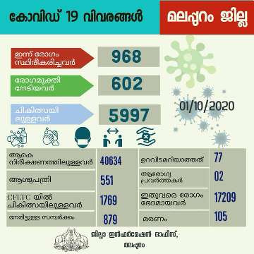 മലപ്പുറം ജില്ലയിൽ ഇന്ന് 968 പേർക്ക്